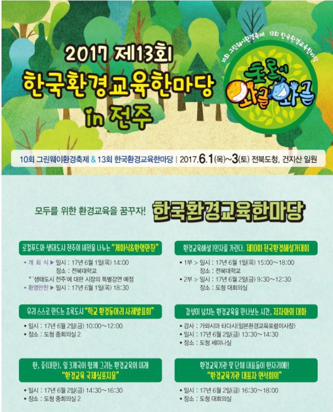 『2017 한국환경교육한마당』의 주제는 “초록이 와글와글”입니다.