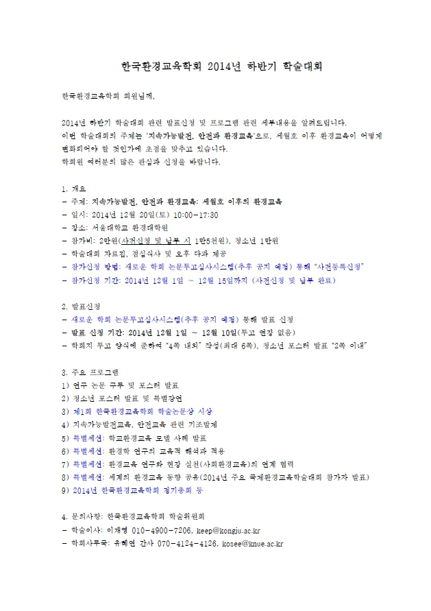 - 주제: 지속가능발전, 안전과 환경교육: 세월호 이후의 환경교육