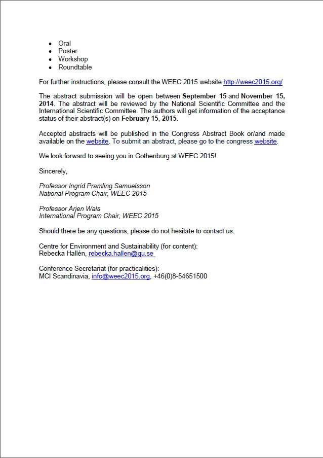 International Program Chair, WEEC 2015Should there be any questions, please do not hesitate to contact us:
