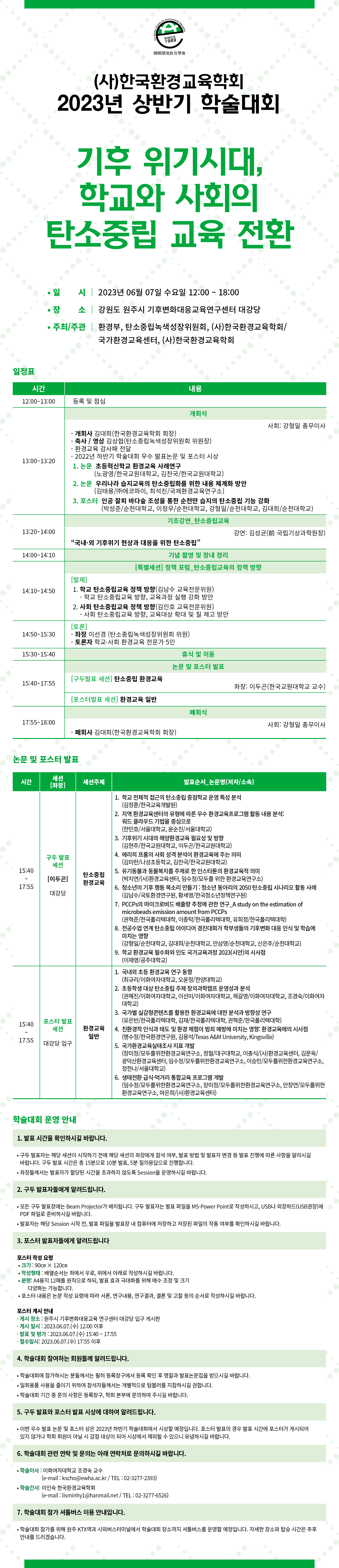 2023년 (사)한국환경교육학회 상반기 정기 학술대회 일정 안내 드립니다.