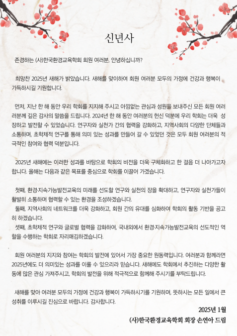2025년 학회장 신년사