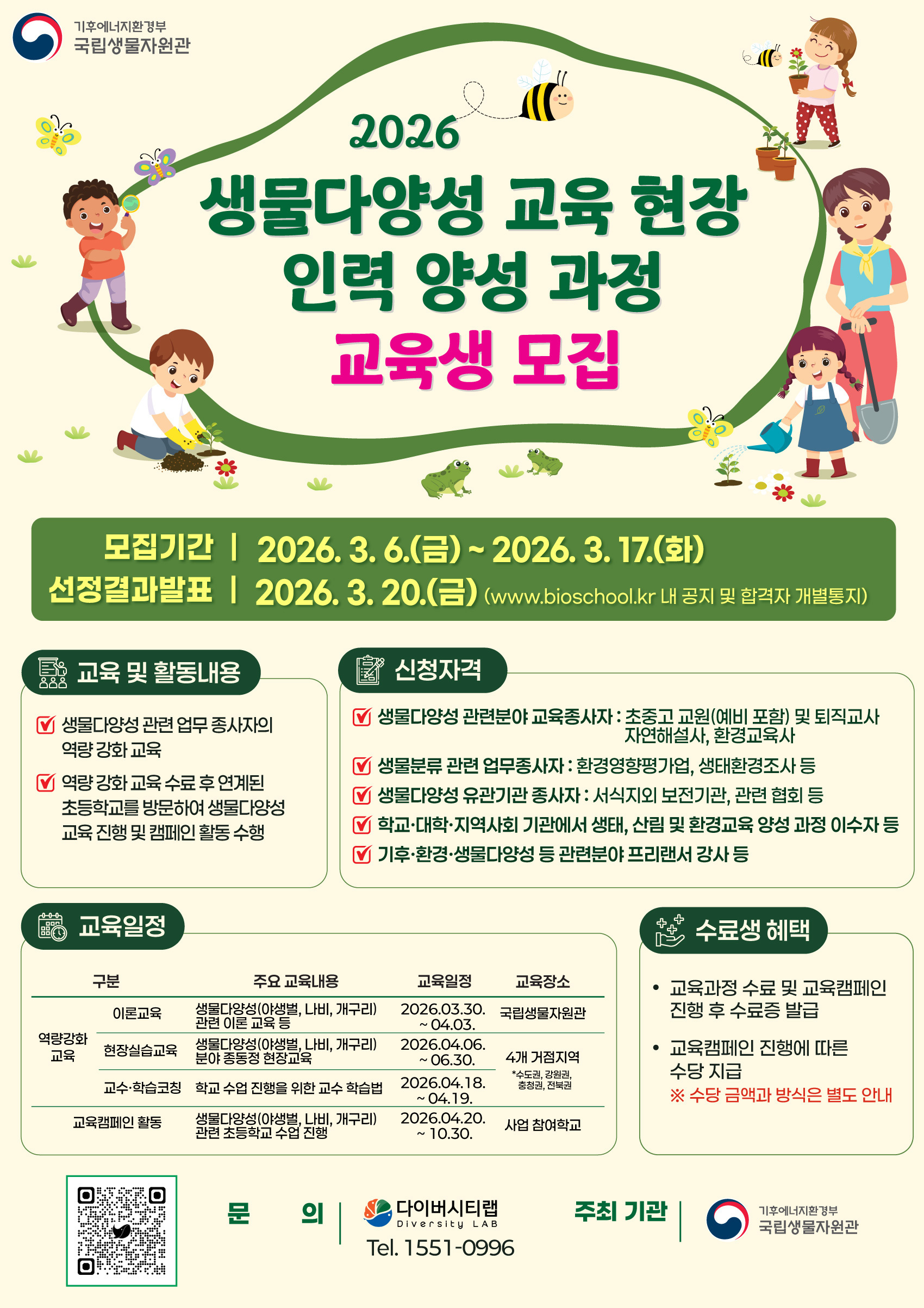 [국립생물자원관, (주)다이버시티랩] 2026 생물다양성 교육 현장 인력 양성 과정 교육생 모집 안내